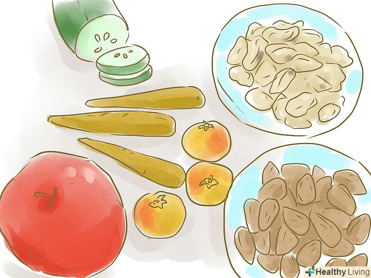 Пропонуйте пацієнту здорову їжу.під час хіміотерапії в організмі зростає потреба в поживних речовинах, проте надходження цих речовин скорочується через поганий апетит. Все це може надати руйнівний вплив на здоров'я, тому вам необхідно простежити за тим, щоб хворий регулярно їв корисну їжу, оскільки в ній важливий кожен поживний елемент.- Включіть в раціон калорійні продукти. У кожному шматочку їжі має міститися максимально можливу кількість енергії. Прикладом таких продуктів може бути будь-яка їжа з вмістом масла і молочні коктейлі з сухофруктами.