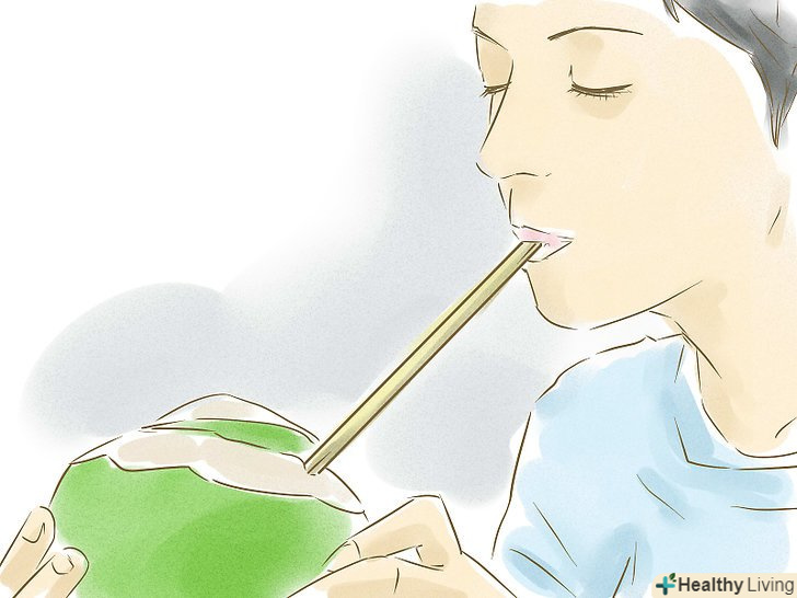 Пропонуйте хворому якомога більше напоїв, що не містять кофеїн або алкоголь.хіміотерапія викликає сухість у роті( ксеростомію), тому щоб позбутися від цього симптому, необхідно пити більше рідини.[1]- Підійде звичайна вода, вода з ароматизаторами, смузі, морозиво, сорбер, щербет, фруктовий лід, трав'яний чай і чай і кава без кофеїну.