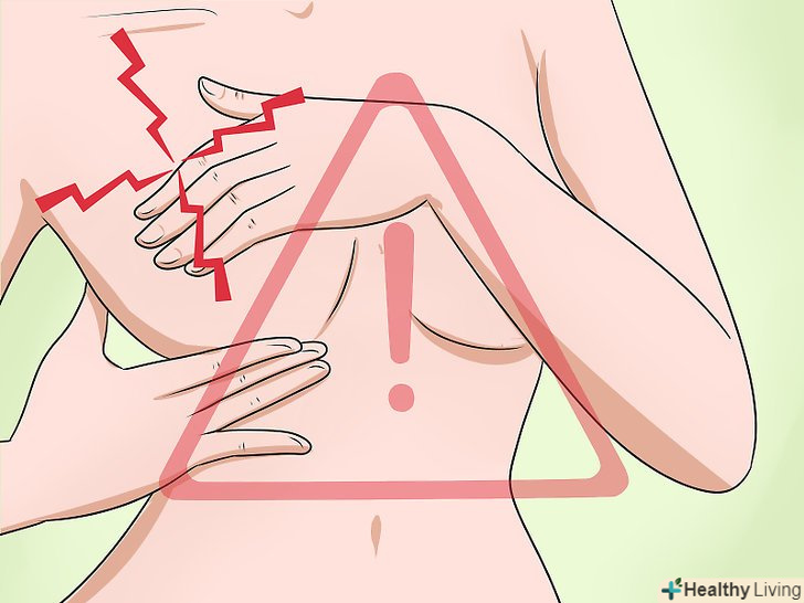 Пам'ятайте, що біль не можна вважати нормальним станом.якщо у вас болить груди або сосок, і біль не проходить, вам необхідно звернутися до лікаря. Тканина грудей не повинна хворіти-біль вказує на інфекцію, процес зростання, на вузлик або пухлина. Біль у грудях зазвичай не є ознакою раку.[18]- Не забувайте, що якщо у вас менструація або ви вагітні, у вас може відчуватися біль і дискомфорт в грудях через коливання гормонів. Якщо біль не проходить і ніяк не пов'язана з менструальним циклом, вам слід звернутися до лікаря.[19]