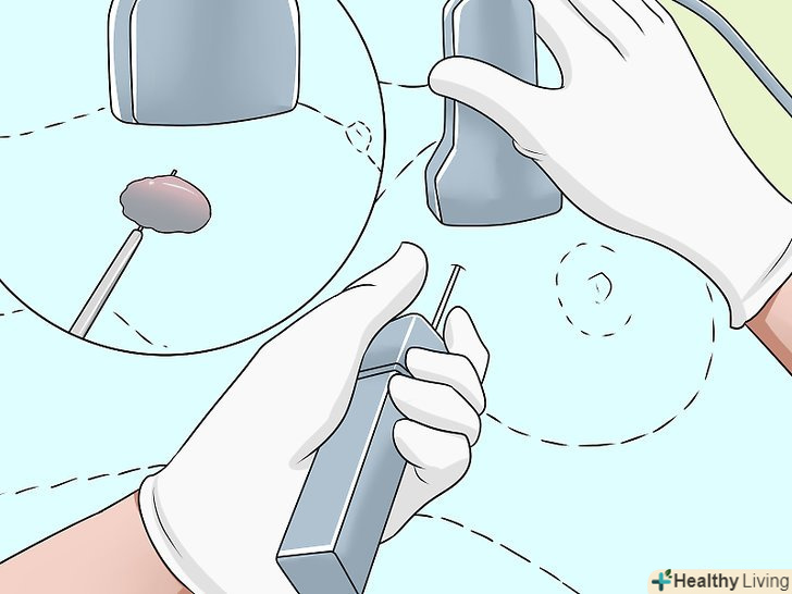 Зробіть біопсію.якщо результати мамографії та МРТ вказують на те, що у вас є пухлина, вам можуть призначити тонкоголкову біопсію для визначення типу освіти та підбору лікування (оперативного або хіміотерапії). При біопсії голкою забирається певна кількість тканини для аналізу. Як правило, ця біопсія не вимагає госпіталізації. Місцева анестезія робиться лише при хірургічній біопсії (лампектомії).[31]- Потрібно зробити біопсію для визначення природи раку до того, як буде призначено лікування. Біопсія може здаватися страшною, проте дуже важливо знати, чи є утворення злоякісним-це визначить тип лікування. Чим раніше буде виявлено рак, тим вище шанси на одужання.