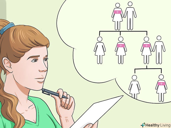 Пам'ятайте про фактори ризику.у деяких людей шанси захворіти на рак грудей вище. Але не думайте, що раз ви входите в групу підвищеного ризику, у вас обов'язково буде рак. Вам просто потрібно більше уваги приділяти свої груди, регулярно проходити огляд у лікаря і робити мамографію. До факторів ризику відноситься:[12]- Пол. У жінок ризик захворіти вище, ніж у чоловіків.
