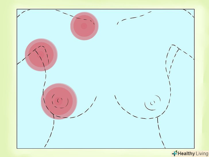 - Пам'ятайте, що грудна тканина розширюється ближче до пахви. У цій частині нерідко утворюється пухлина.[11]
