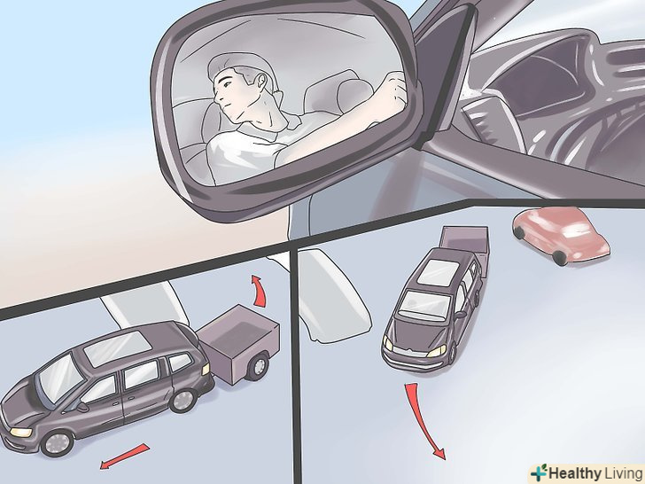 Не нехтуйте передньою частиною.попросіть пасажирів подивитися в бічні дзеркала, щоб весь час стежити за передньою частиною причепа, уважно вивчаючи ситуацію, щоб не упустити паркувальних огорож або підвищень, які можуть стати проблемою при вирівнюванні причепа. Ведіть впевнено і користуйтеся бічними дзеркалами.- Ваше периферичний зір мало допоможе в даному випадку. Користуйтеся підказками або бічними дзеркалами, щоб акуратно давати задній хід.