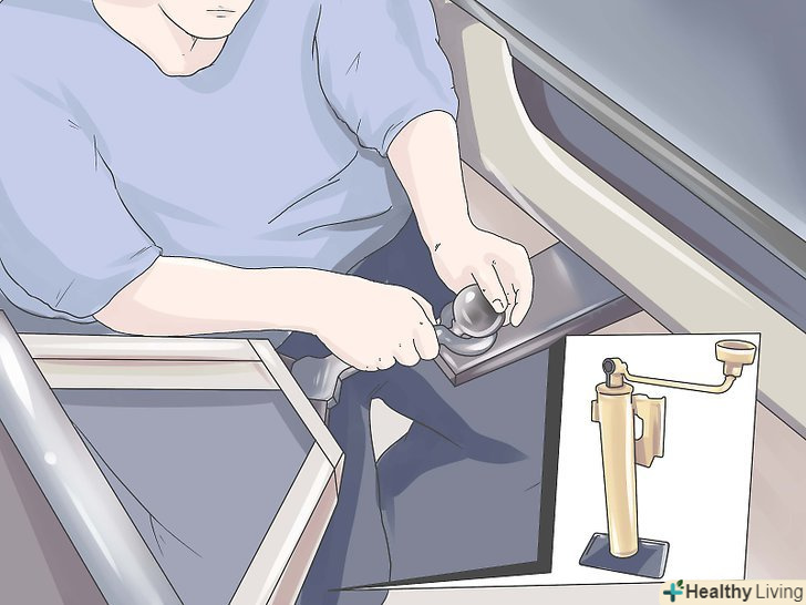 Приєднайте трейлер до Вашого автомобіля.використовуйте упор причепа, щоб підняти трейлер і вирівняти його з кулею. Переконайтеся, що фаркоп відкритий, перед тим, як встановлювати трейлер. Перетягніть ременями безпеки місце зчеплення причепа з урахуванням невеликого провисання, але не настільки, щоб ремені торкалися землі.- При використанні упору постарайтеся підняти язичок для фіксації кульки. Якщо у вас не вийде, можливо, розміри кульки і підшипника будуть не збігатися або кулька просто неправильно встановлений. В цьому випадку просто замініть кульку на потрібний розмір або спробуйте його ще раз закрити.