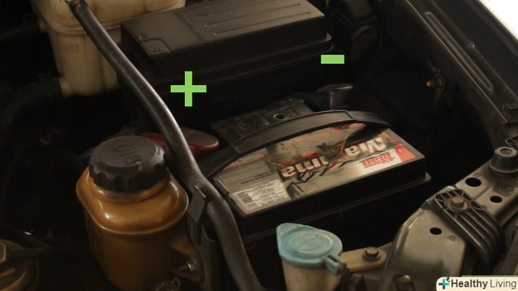 До того, як почнете прикурювати, оцініть зовнішній вигляд розрядженого акумулятора. Корпус батареї не повинен мати тріщин і патьоків електроліту.- Якщо Ви знайшли щось подібне, то зупиніться і ні в якому разі не намагайтеся прикурювати. Батарея потребує заміни, а якщо ви все-таки спробуєте її зарядити, то можете нанести каліцтва собі і оточуючим.
