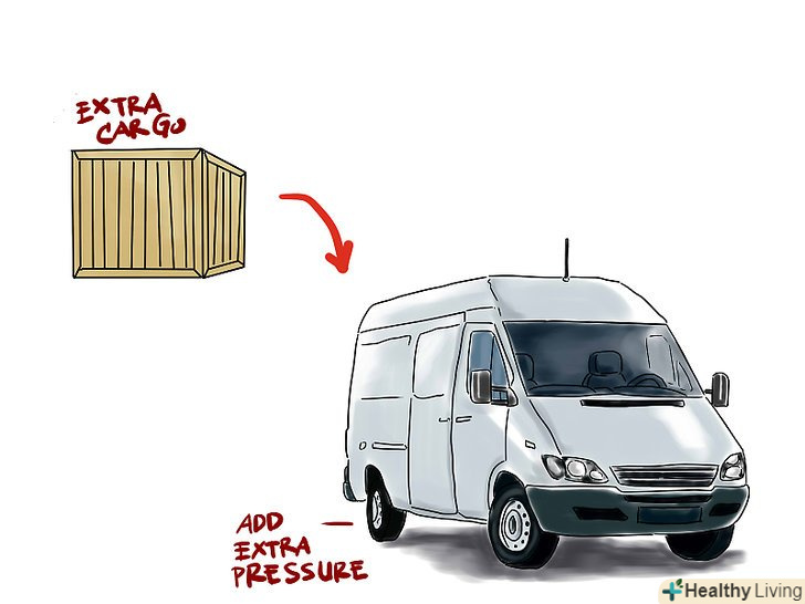 Компенсуйте вагу.якщо ви перевозите додатковий вантаж в багажнику або на даху, то буде не зайвим збільшити тиск в задніх колесах. Особливо це стосується випадків, коли ви подорожуєте на далекі відстані. Коли машина буде розвантажена, не забудьте зменшити тиск задніх коліс до стандартних значень.