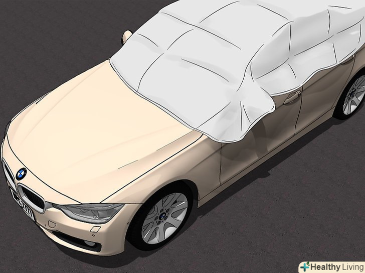 Використовуйте чохол для автомобіля.авточохли можна знайти в більшості магазинів автозапчастин і в деяких супермаркетах у відділі автомобільних аксесуарів. Запишіть марку, модель і рік випуску автомобіля, оскільки більшість автомобільних чохлів класифікуються за цими характеристиками.[6]