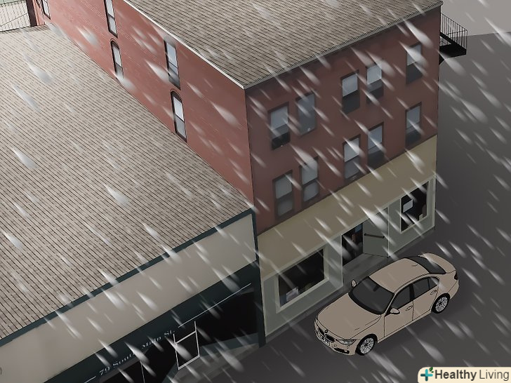 Припаркуйтесь біля будівлі з підвітряного боку.якщо шторм йде зі сходу, паркування автомобіля з західної сторони великої будівлі може допомогти захистити його від граду. Сильний вітер може пронести град прямо повз вашої машини.[2]