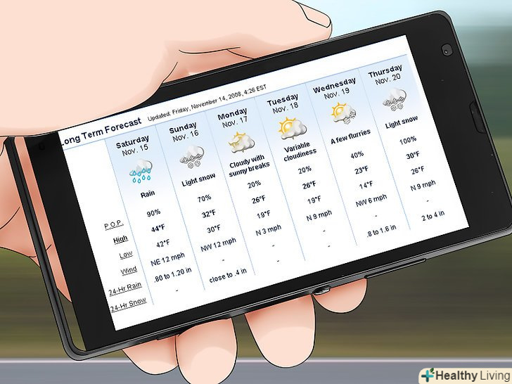 Завантажте додаток, щоб отримувати сповіщення про погоду і мати достатньо часу, щоб захистити свій автомобіль. більшість погодних додатків для смартфонів відправляють користувачам повідомлення про різкі зміни погодних умов. Переконайтеся, що у вас включено це повідомлення. Додаток заздалегідь повідомить вам про наближення граду, і, швидше за все, у вас буде достатньо часу захистити свою машину.[8]