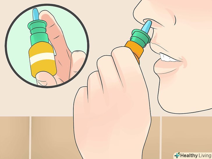 Приймайте відпускається без рецепта протинабряковий засіб.з його допомогою ви знизите набряк слизової оболонки, полегшивши закладеність носа.[18] до популярних протинабрякових препаратів відносяться фенілефрин, фенілпропаноламін і псевдоефедрин. Вони доступні в різній формі, в тому числі у вигляді спреїв і таблеток. Завжди дотримуйтесь вказівок, наведених в інструкції по застосуванню.- Будьте уважні при використанні протинабрякових назальних спреїв. Їх не слід застосовувати довше трьох днів поспіль, в іншому випадку після припинення їх прийому симптоми можуть відновитися з ще більшою інтенсивністю.[19]