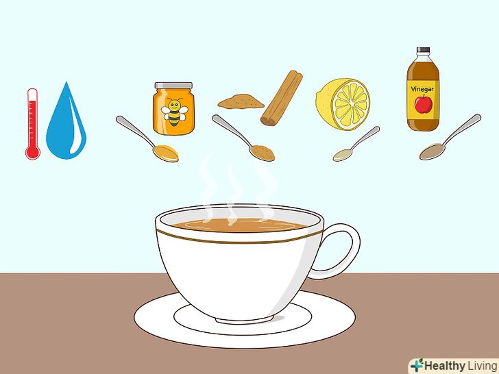 - Гаряча вода зі столовою ложкою меду, столовою ложкою кориці, чайною ложкою лимонного соку і столовою ложкою яблучного оцту.