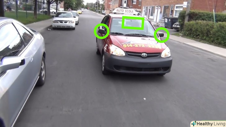Подивіться в дзеркала.дивіться в дзеркала, коли будете наближатися до місця.[9]- Переконайтеся, що ніхто не їде прямо за вами.