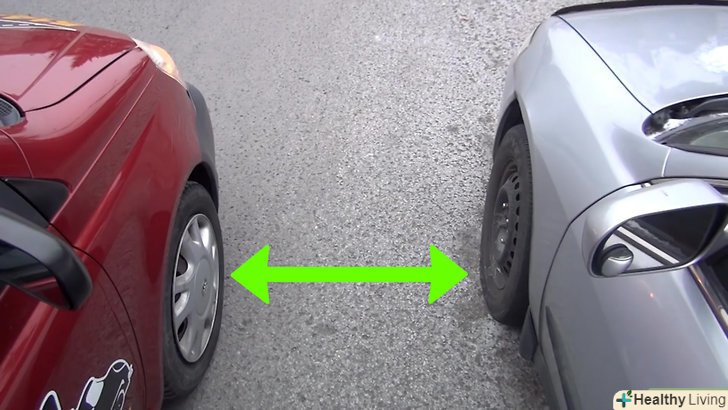 - Направте свою машину в потрібну сторону.щоб машина рівно увійшла в місце, вам потрібно розташувати її не дуже близько і не дуже далеко від оточуючих машин і вивернути кермо.[1]