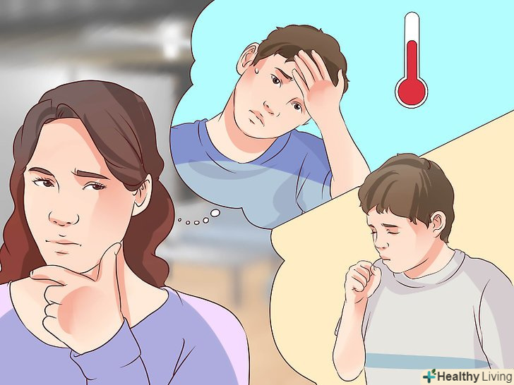 Виміряйте температуру.якщо температура вище 38 градусів, це може вказувати на проблеми зі здоров'ям, з якими краще звернутися до лікаря. Якщо температура висока, викликайте лікаря.- Температура може вказувати на наявність інфекції або вірусу, від яких складно позбутися самостійно.[2]