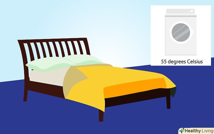 Періть постільну білизну як мінімум при температурі в 55 градусів Цельсія.висока температура води здатна вбивати пилових кліщів; не можна покладатися виключно на миючий засіб. Якщо ж Ви перете в холодній воді-сушіть білизну під прямими сонячними променями.