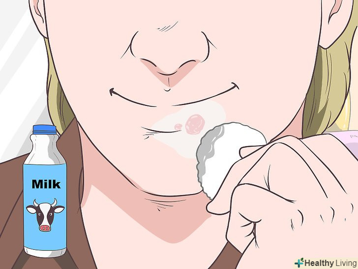 Промакайте запалену ділянку шкіри молоком.білок, який міститься в молоці, допомагає зняти запалення, в той час, як прохолодна рідина заспокоїть біль, яку ви можете відчувати. Промочіть ватний диск в молоці і прикладайте його на запалену ділянку кілька разів на день. Цю процедуру так само можна застосовувати як тільки ви зрозумієте, що скоро буде спалах вірусу.