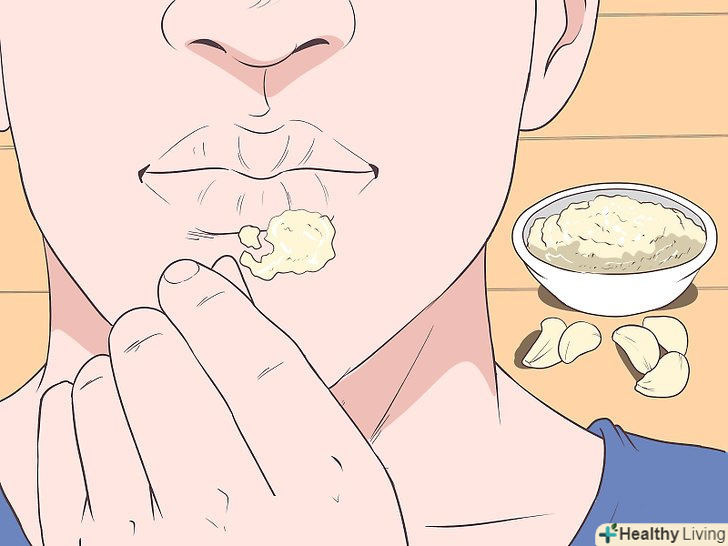 Наріжте часник.часник є одним з тих домашніх засобів, які, здається, можна застосовувати при лікуванні багатьох легких нездужань. Зробіть пасту з давленого або різаного часнику і прикладіть її на 15 хвилин. Антибактеріальні властивості часнику продезінфікують поверхню шкіри і прискорять процес загоєння. Будьте обережні, адже часник є сильним засобом і може під час прикладання заподіяти біль.