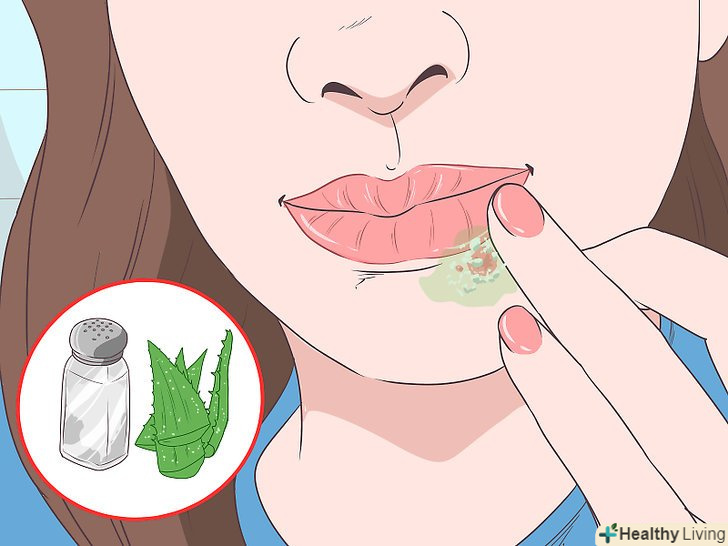Прикладіть сіль.прикладання солі прямо на герпес допоможе прискорити процес загоєння, хоча ця процедура трохи болюча. Для отримання ефекту, залиште сіль на кілька хвилин, після чого змийте її. Потім, прикладіть чистий алое на те ж місце. Це допоможе заспокоїти роздратоване запалення і полегшити больові відчуття, викликані застосуванням солі.