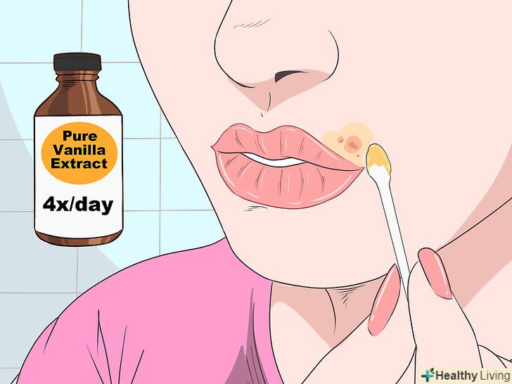Змочіть ватяну паличку натуральним екстрактом ванілі.прикладайте 4 рази на день, поки застуда не заживе. При приготуванні екстракту ванілі використовується спирт, і це, можливо, є причиною, чому такий екстракт сприяє загоєнню герпесу.