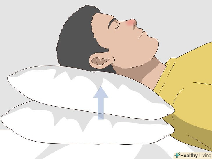 Спіть з піднятою головою.у носі може накопичуватися слиз, коли ви спите або просто лежите. Якщо у вас закладений ніс, підкладайте під голову додаткові подушки або спите в кріслі.[11]- Якщо ви зазвичай спите на животі або на боці, спробуйте під час хвороби спати на спині і піднімайте голову.