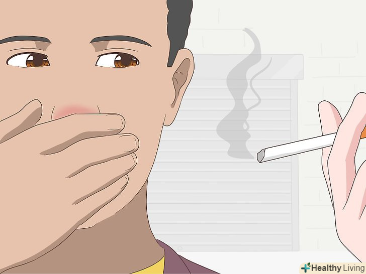 Уникайте подразників.подразники, наприклад сигаретний дим, можуть погіршувати закладеність носа. Якщо у вас закладений ніс,не паліть і не перебуваєте поруч з людьми, що палять. Якщо закладеність носа викликана алергією, зробіть все можливе, щоб захистити себе від алергенів, наприклад пилу і шерсті домашніх тварин.[12]- Якщо вам потрібна допомога для того, щоб кинути палити, проконсультуйтеся зі своїм лікарем або зателефонуйте на гарячу лінію.