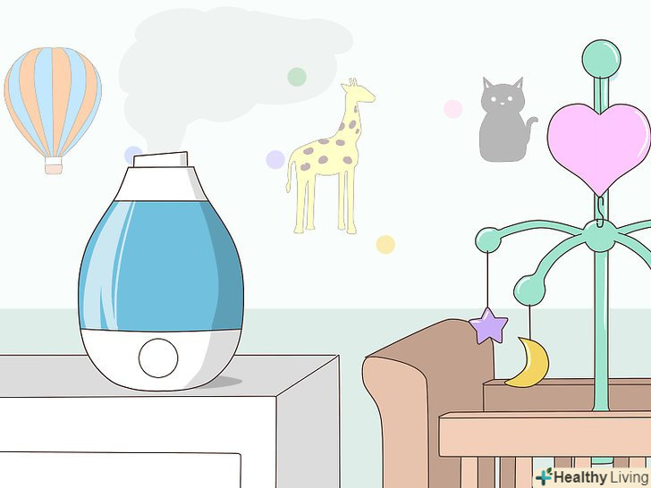 Поставте в спальні дитини зволожувач повітря з холодним випаровуванням. Зволожувач допомагає розріджувати слиз і полегшити дихання. Поставте зволожувач повітря з холодним випаровуванням в спальні дитини і включайте його на ніч. Якщо можна, залийте в зволожувач фільтровану воду. Раз на тиждень чистіть зволожувач, щоб запобігти поширенню мікробів.[14]- Не використовуйте зволожувачі повітря з гарячою парою, так як в них легше заводяться бактерії, які можуть поширитися по всьому будинку.