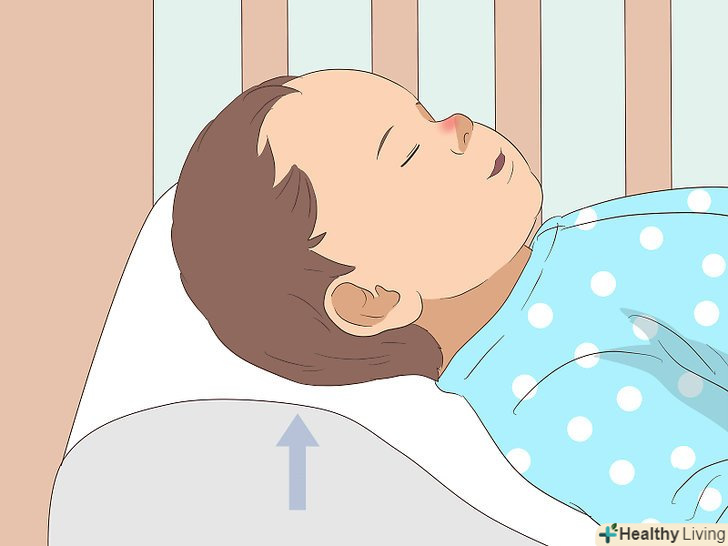 Піднімайте голову дитини, коли він спить.скрутіть рушник і підкладіть його під матрац. Покладіть дитину головою на підняту ділянку, щоб слиз не збиралася в носі, а витікала з нього під час сну.[16]