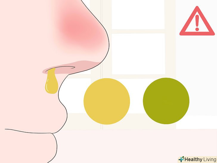 Негайно зверніться за медичною допомогою, якщо ви відчуваєте біль в пазухах носа, яка супроводжується жовтими або зеленими виділеннями.жовті або зелені виділення з носа часто, хоча і не завжди, свідчать про інфекцію. У цьому випадку лікар повинен перевірити, чи немає у вас інфекції, і при необхідності призначити відповідне лікування.[20]- Врахуйте, що ви можете занести бактеріальну інфекцію при промиванні пазух носа, і первісна закладеність носа через алергію або застуди може перерости в інфекційне захворювання. У цьому випадку лікар може призначити вам курс антибіотиків, після чого ваш стан покращиться набагато швидше, ніж без лікування.