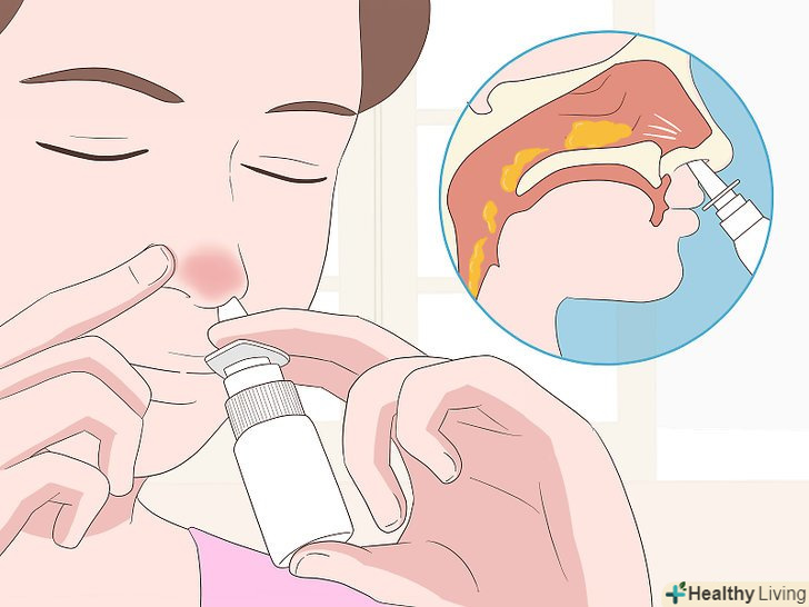 За рекомендацією лікаря приймайте відпускаються без рецепта протинабрякові або антигістамінні засоби.можливо, вам вдасться полегшити дихання за допомогою відпускаються без рецепта ліків (в залежності від причини закладеності носа). Для дитини 4-12 років вибирайте протинабряковий або антигістамінний засіб для дітей. Перш ніж приймати будь-які ліки, обов'язково проконсультуйтеся з лікарем. Швидше за все, лікар порекомендує вам певний препарат або групу препаратів.[8]- Якщо закладеність носа пов'язана з застудою, підійде протинабряковий засіб. Протинабрякові препарати знімають набряк і запалення носових проходів і завдяки цьому полегшують дихання. Вони доступні як у формі таблеток або розчинів для перорального прийому, так і у вигляді назальних спреїв. Врахуйте, що протинабрякові назальні спреї рекомендують використовувати не довше 3 днів поспіль, інакше закладеність носа може відновитися, в той час як пероральні препарати можна приймати до 5-7 днів.