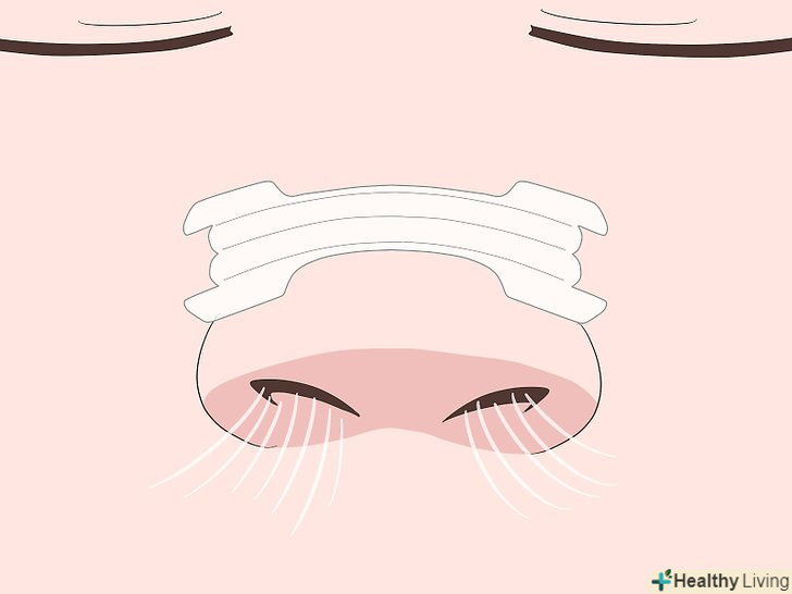 Використовуйте назальний пластир, щоб розширити ніздрі.тонкі білі смужки пластиру дозволяють розширити ніздрі і полегшити дихання. Наклейте смужку на перенісся і подивіться, чи полегшить це закладеність носа.[4]- Назальний пластир часто продають як пластир від хропіння, його можна придбати в аптеках і супермаркетах.