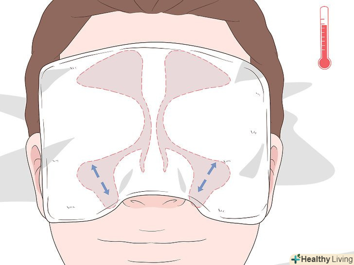 Прикладайте до носа теплі компреси, щоб полегшити закладеність.тепло розширює пазухи і тим самим зменшує закладеність носа. Змочіть ганчірку якомога більш гарячою водою, яку ви в змозі витримати, ляжте і покладіть ганчірку на перенісся і пазухи, так щоб вона не закривала ніздрі. Повторно змочіть ганчірку гарячою водою, коли вона помітно охолоне.[5]- Можливо, доведеться змочувати ганчірку кілька разів, перш ніж ви відчуєте полегшення, так що запасіться терпінням. Спробуйте прикладати компреси в той час, коли ви займаєтеся чимось розслаблюючим, наприклад слухаєте музику або дивіться телевізор.