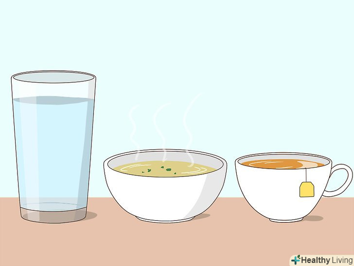 Пийте більше рідини, щоб розрідити слиз.це допоможе прочистити закладений ніс під час хвороби. Намагайтеся пити просту воду, трав'яні чаї та бульйони і тримайте біля себе пляшку або кухоль з водою, щоб ви могли в будь-який момент втамувати спрагу.[10]- Особливо добре допомагає прочистити ніс гаряче питво.