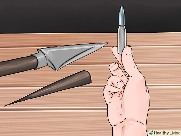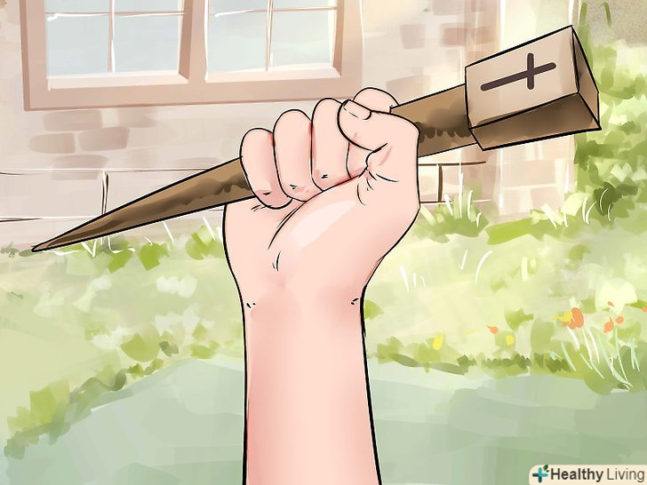 Атакуйте його за допомогою інших предметів.існують певні предмети, наприклад, кулі або дерев'яні кілки, які можна встромити в серце або груди вампіра і тим самим його вбити.[7]- Дерев'яний кол. це може бути певний дерев'яний кол (з конкретного дерева або в формі священного предмета, наприклад, хреста) або просто гострий шматок дерева. Деякі сучасні історії вампірів використовують повсякденні дерев'яні предмети, такі як кий для більярду та Вішалки для одягу.[8]