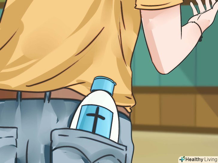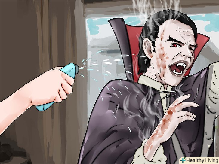 Носіть святу воду.для рольової гри або маскарадного костюма досить знайти маленьку пляшечку і налити в неї трохи води. Для додаткового ефекту можна додати трішки блиску, щоб надати воді «особливий» вигляд. Не всіх вампірів можна вбити (швидше відлякати), тому вам варто дізнатися, як відреагує гравець-вампір.[13]