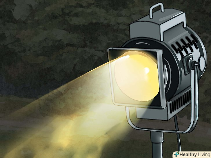 Запаліть штучне світло.якщо вампір не любить світло, а ви застрягли в темряві, можна скористатися технологіями, які генерують потужне освітлення. [17]- Ультрафіолетовий лазер може використовувати сконцентровані ультрафіолетові промені, які створять сліпуче яскраве світло. Крім того, яскраве світло не дозволить жертві побачити напрямок променя, що ще більш корисно для потенційного вбивці. Це означає, що ви можете атакувати з будь-якого кута.