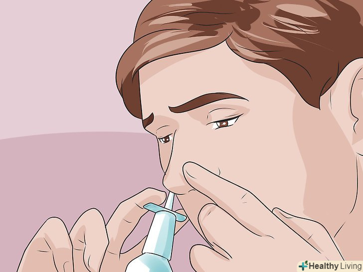 Застосовуйте сольовий розчин, щоб позбутися від закладеності носа.застосування спреїв з сольовими розчинами сприяють відходженню слизу з носа і горла, що також сприяє ослабленню кашлю. Такі кошти можна придбати в аптеці або приготувати самостійно.- Щоб самостійно зробити сольовий розчин, візьміть 4 склянки теплої води і додайте в неї 2 чайні ложки столової солі. Ретельно розмішайте сіль. Промийте ніс цим розчином за допомогою пристрою для промивання носа або шприца, щоб викликати подразнення слизової носових пазух.[26] застосовуйте розчин кожен раз, коли у вас закладає ніс, особливо перед сном.