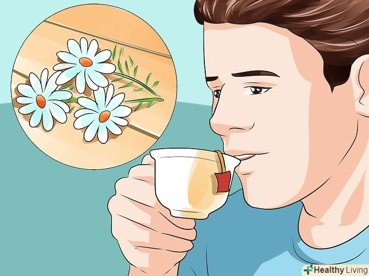 Використовуйте лікувальні властивості ромашки.ромашковий чай дуже популярний при багатьох нездужаннях. Він добре полегшує стан при застуді і допомагає заснути.[32] також в аптеках можна знайти ефірну олію ромашки.- Щоб полегшити кашель, додайте масло ромашки в гарячу воду для інгаляції. Також ромашковим маслом можна змочуватиароматичні бомбочки для ванн, щоб вони сприяли ослабленню і пом'якшення кашлю.