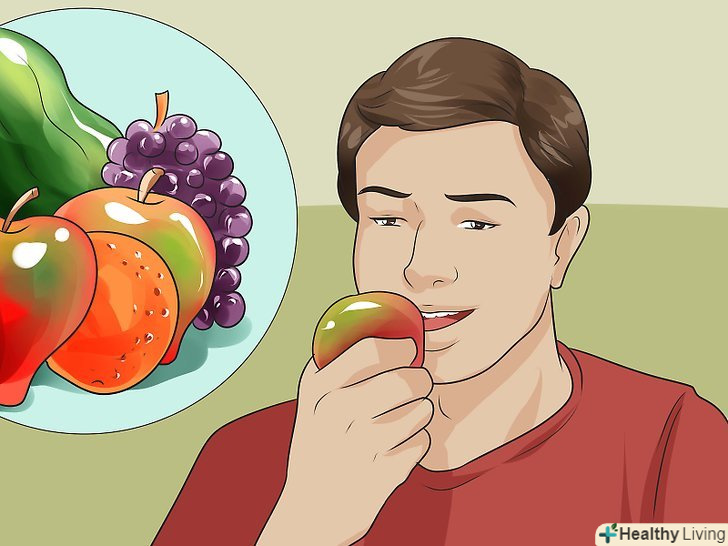 Їжте більше фруктів.дослідження показали, що багата клітковиною дієта (особливо фруктовою клітковиною) здатна послаблювати хронічний кашель, а також інші симптоми респіраторних захворювань.[8]- Вживання клітковини свіжих фруктів дозволяє більш ефективно боротися з кашлем, ніж вживання клітковини у вигляді біологічно активних добавок до їжі. Крім того, в таких фруктах, як яблука і груші, містяться флавоноїди, благотворно впливають на роботу легенів в цілому.[9]