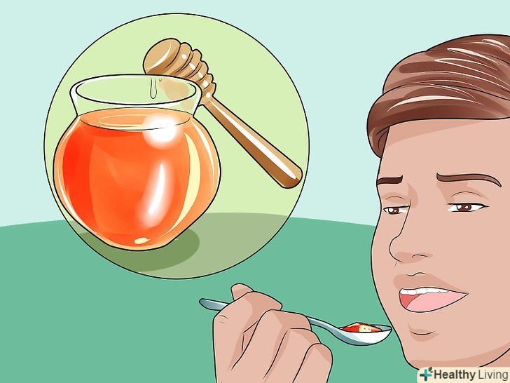 Вживайте мед.мед – натуральний засіб від кашлю, яке заспокоює роздратоване горло, а також знімає багато алергічні причини хронічного кашлю. Щоб полегшити кашель, просто додайте трохи меду в гарячий чай.[20] також можна з'їдати по ложці меду безпосередньо перед сном, щоб вам було простіше заснути.[21]- Безпечно давати мед дітям можна тільки з 2 років і старше. В іншому, мед вважається досить ефективним протикашльовим засобом для дітей.[22] однак, ні в якому разі не слід давати мед дітям молодше року. Мед може викликати дитячий ботулізм – серйозний вид харчового отруєння у малюка.[23]
