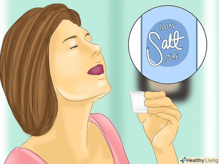 Прополощіть горло теплою солоною водою.сіль вбиває мікроби в роті і горлі, пом'якшує сухість і роздратування. Полощіть горло кілька разів на день, щоб вгамувати сухість в горлі.[3]- Додайте в чашку з водою чайну ложку солі.