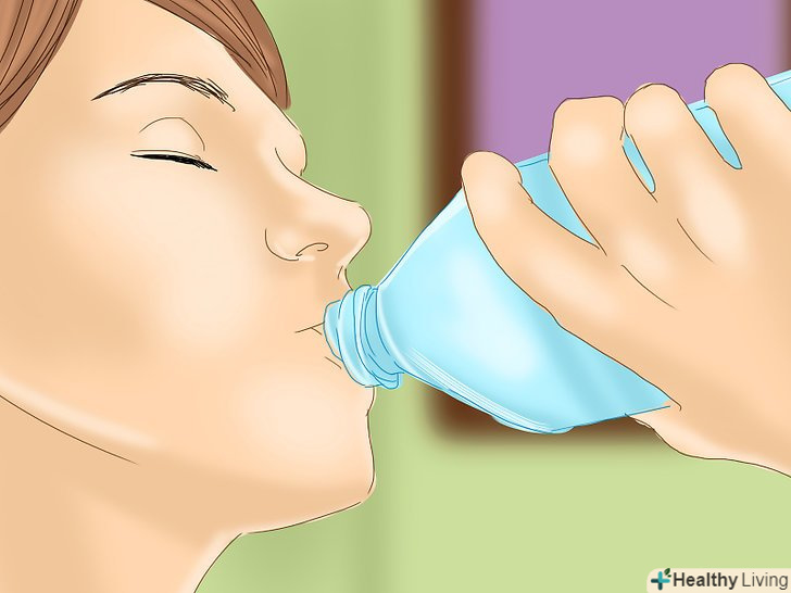 Уникайте зневоднення.сухість у горлі може вказувати на те, що ви споживаєте недостатньо рідини. Поглинання рідини, особливо звичайної води, може вгамувати сухість в горлі. Регулярно пийте воду або інші рідини протягом усього дня.- Обмежте споживання кофеїну та алкогольних напоїв з тієї ж причини, по якій спортивні тренери рекомендують це зробити своїм підопічним ‒ вони зневоднюють організм, тому, щоб не говорилося в рекламі, цими напоями спрагу не вгамувати.[8]