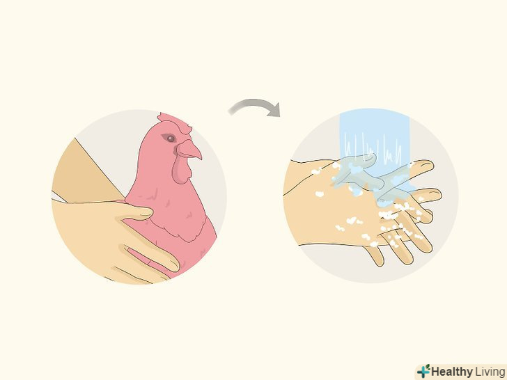 Якщо уникнути контакту з твариною не вдалося, відразу ж вимийте руки.щоб потенційні інфекційні агенти не осіли на шкірі, ретельно вимийте руки після контакту з твариною. Змочіть руки водою і намильте милом. Ретельно розтирайте мильну піну по шкірі рук протягом 30 секунд, після чого обполосніть руки теплою проточною водою і витріть сухим, чистим рушником.[23]- Якщо вам доводиться брати в руки багато тварин, завжди мийте руки, перш ніж доторкнутися до чергової тварини. Якщо одна з тварин хворіє, а ви не дотримуєтеся запобіжних заходів, є ризик, що ви перенесете інфекцію на інших тварин, з якими контактуєте.