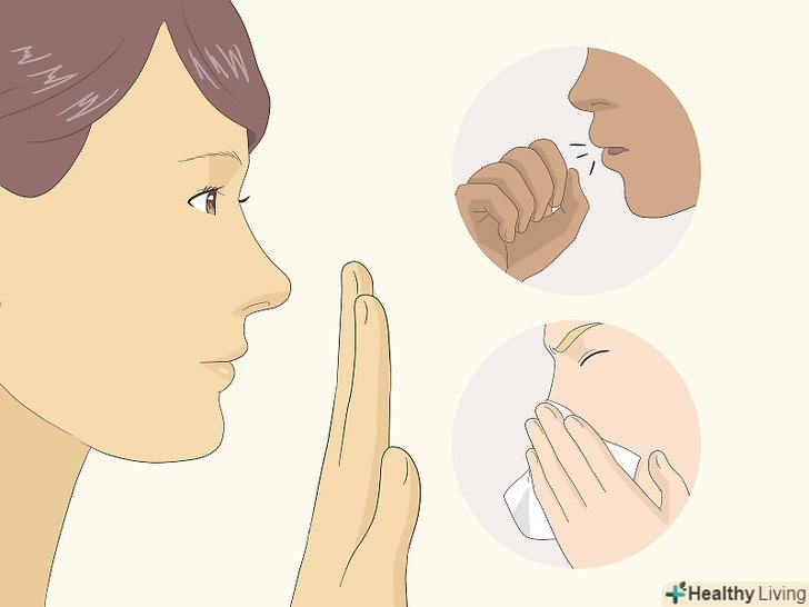 Прикривайте рот і ніс, коли чхаєте і кашляєте.одні з головних симптомів коронавірусної інфекції-сильний кашель і часте чхання. Щоб запобігти поширенню вірусу по повітрю, прикривайте рот одноразовою серветкою або хоча б прикривайтеся рукавом, коли кашляєте і чхаєте.[32]- Постарайтеся, щоб у вас під рукою завжди була коробка з одноразовими серветками. Однак якщо у вас немає ні серветки, ні хусточки, і ви відчуваєте, що ось-ось чхнете, прикрийте ніс і рот згином ліктя.
