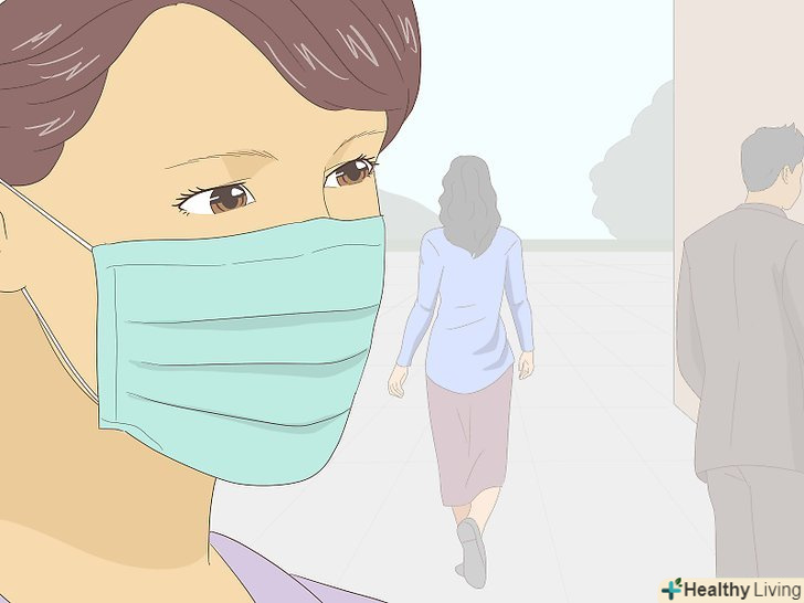 Тримайтеся подалі від людей, які кашляють або чхають.коронавірус є збудником респіраторної інфекції, типовими симптомами якої є кашель і чхання. Крім того, коли людина кашляє і чхає, вірусні частинки потрапляють в повітря, і ризик зараження знаходяться поблизу людей зростає. Якщо ви помітили у людини явні ознаки респіраторного захворювання, відійдіть від нього подалі.[6]- Якщо це можливо, попросіть людину з ознаками респіраторної інфекції, щоб він тримався від вас на безпечній відстані. Так, можна сказати: "я бачу, що ви кашляєте. Сподіваюся, що ви скоро видужаєте, але все ж прошу вас не підходити до мене близько. Я не хочу захворіти".