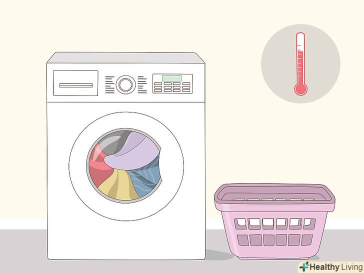 Періть білизну при високій температурі, щоб знищити вірус.коронавірус може потрапити на одяг, постільну білизну та рушники, тому всі ці речі необхідно ретельно прати. Встановіть на пральній машині максимально високу температуру і використовуйте необхідну кількість прального порошку з розрахунку ваги білизни. Завантажте речі в барабан і запустіть нормальний або інтенсивний режим прання (в залежності від моделі пральної машини).[16]- Якщо тип тканини дозволяє, додайте в пральний порошок хлорний відбілювач або відбілювач для кольорових речей (відміряйте повний мірний ковпачок кошти). Це забезпечить додаткову дезінфекцію при пранні.