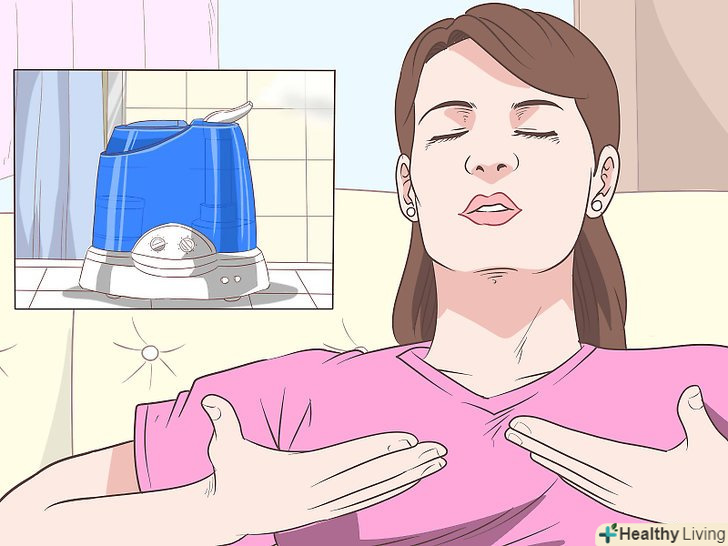 Подихайте вологим повітрям.Увімкніть зволожувач, щоб підвищити вологість повітря в будинку і спальні. Якщо у вас немає зволожувача повітря, повісьте в кімнаті мокрий рушник або розігрійте воду в широкій каструлі.