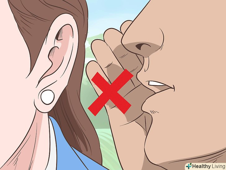 Постарайтеся не шепотіти.Шепіт напружує голосові зв'язки ще більше, ніж звичайна мова. Замість цього зробіть глибокий вдих, а потім розслаблено говорите на видиху.[8]