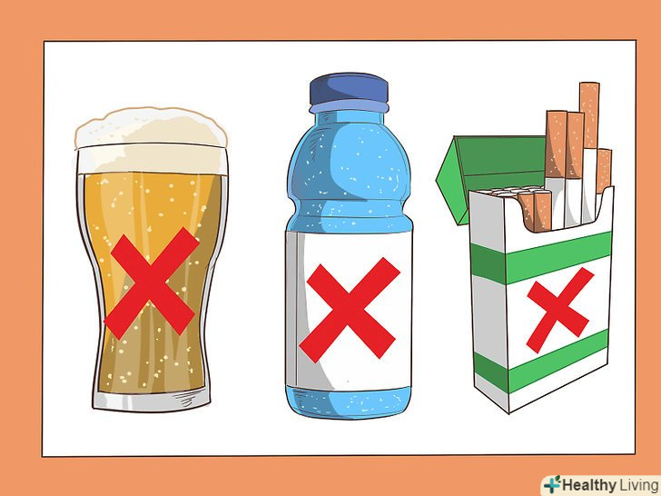Уникайте того, що дратує горло.не вдихайте і не ковтайте те, що може дратувати слизову оболонку, поки ви лікуєтеся і полощете горло антисептиками. Куріння, спиртні напої, споживання великої кількості газованої води, солодкі молочні продукти (наприклад, молочні коктейлі), вдихання пилу і диму — все це може дратувати горло і посилювати ларингіт.[9][10]- Одним з перших симптомів раку горла, викликаного курінням або алкоголізмом, є постійний хрипкий голос. Якщо хрипота триває довше декількох тижнів незважаючи на те, що ви намагаєтеся менше говорити і полощете горло, проконсультуйтеся з лікарем.