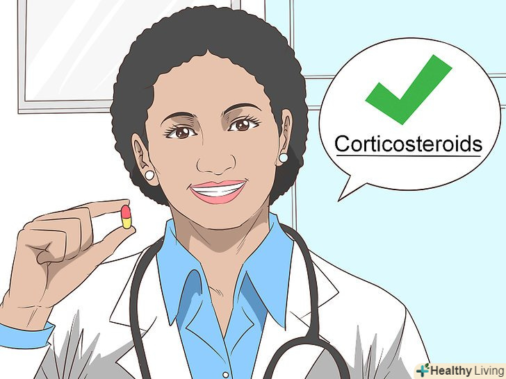 Подумайте про використання кортикостероїдів.якщо у вас важкий ларингіт, який не викликаний бактеріальною інфекцією і не лікується домашніми засобами, дізнайтеся у лікаря про плюси і мінуси короткого курсу лікування кортикостероїдами, такими як преднізон, преднізолон або дексаметазон.[12] стероїдні препарати-ефективні та швидкодіючі протизапальні засоби, які допомагають зменшити набряк, біль та інші симптоми ларингіту. Однак вони мають істотні недоліки, тому їх зазвичай не призначають, за винятком тих випадків, коли потрібна термінова допомога людям, яким голос потрібно для роботи.- Недоліком стероїдних препаратів є те, що вони призводять до зниження імунітету і ослаблення тканин, а також сприяють затримці води в організмі, тому їх зазвичай призначають тільки на короткий період часу.