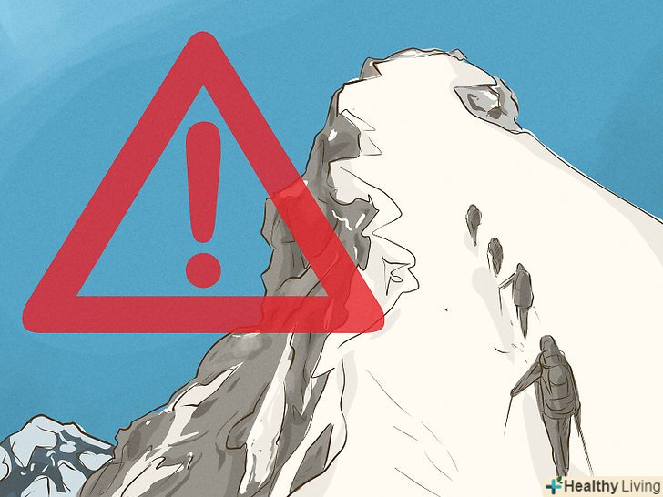 Знизьте рівень навантаження на великих висотах.на великих висотах задишка може виникати навіть у найздоровіших людей. Все через розріджене повітря. Рухайтеся повільно і часто робіть перерви, щоб не перенапружувати легені.[13]- Відпочивайте кожні 10-15 хвилин.